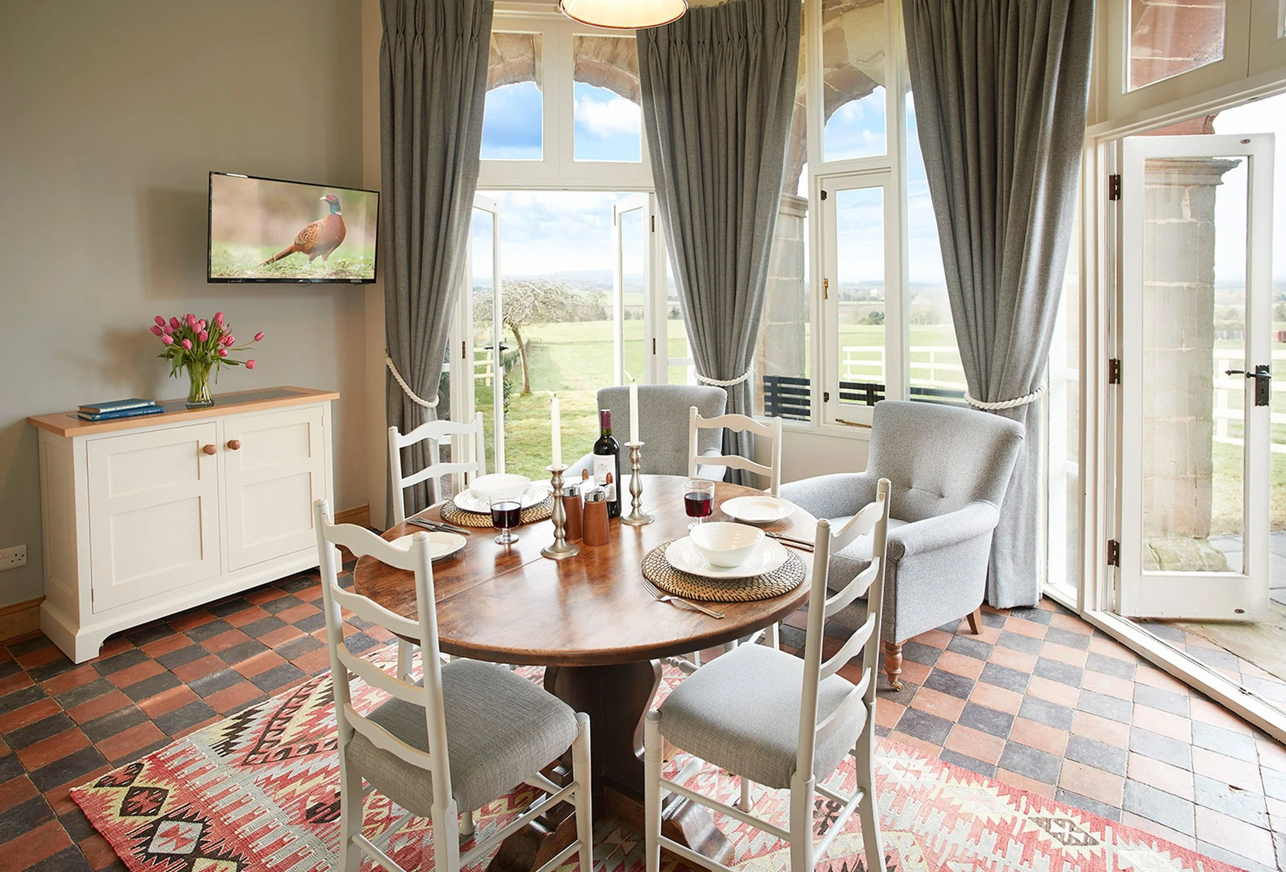 The Summer House and Octagonal Tower built in around 1607 by Sir Francis Newport was originally used as a banqueting house for entertaining his guests to dinner. Unfortunately the main house was destroyed by a fire and never rebuilt and therefore The Summer House is the only remaining structure from that time. Today, this Grade II listed tower forms an airy retreat, set in the rolling Shropshire countryside. It offers excellent views to the East, and views of the Shropshire Hills to the South and the West. The building, now part of the Raby Estate, has been sympathetically modernised to accommodate guests. This provides a very private and unique getaway.